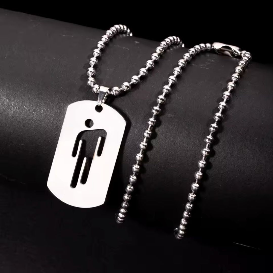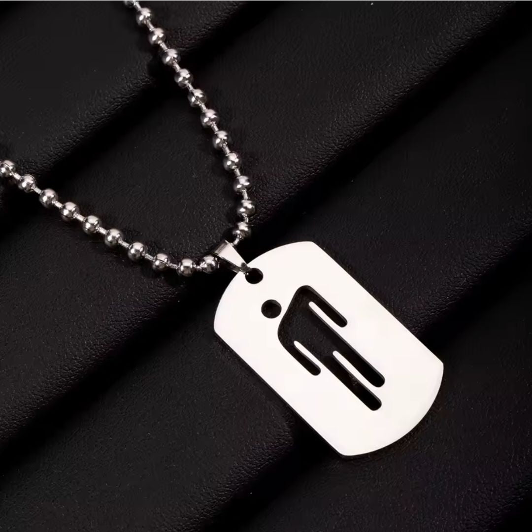 Collar estilo placa ID rectangular de acero quirúrgico 316L, resistente, hipoalergénico y duradero. Su diseño minimalista y atemporal lo convierte en un accesorio versátil para el uso diario. Disponible en color plateado, es ideal tanto para looks urbanos como casuales.