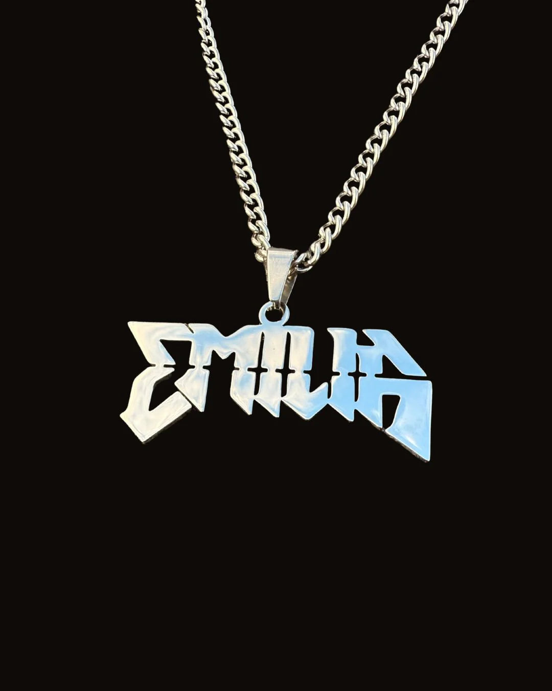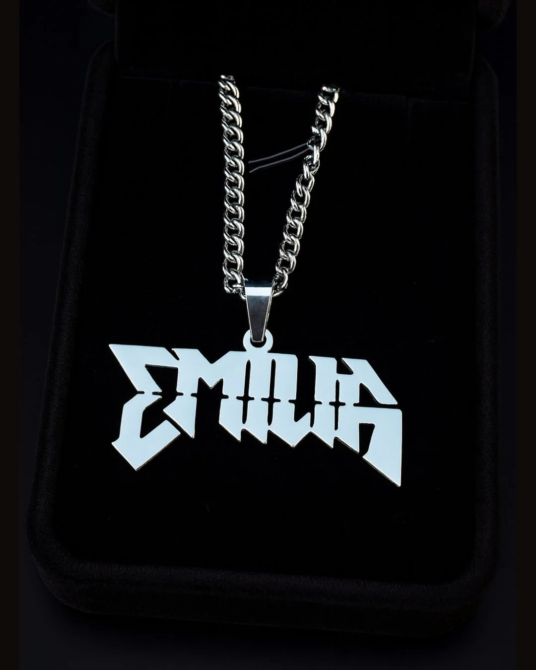 - Dije y cadena fabricados en acero quirúrgico de alta densidad. Ultra resistentes y brillantes.
