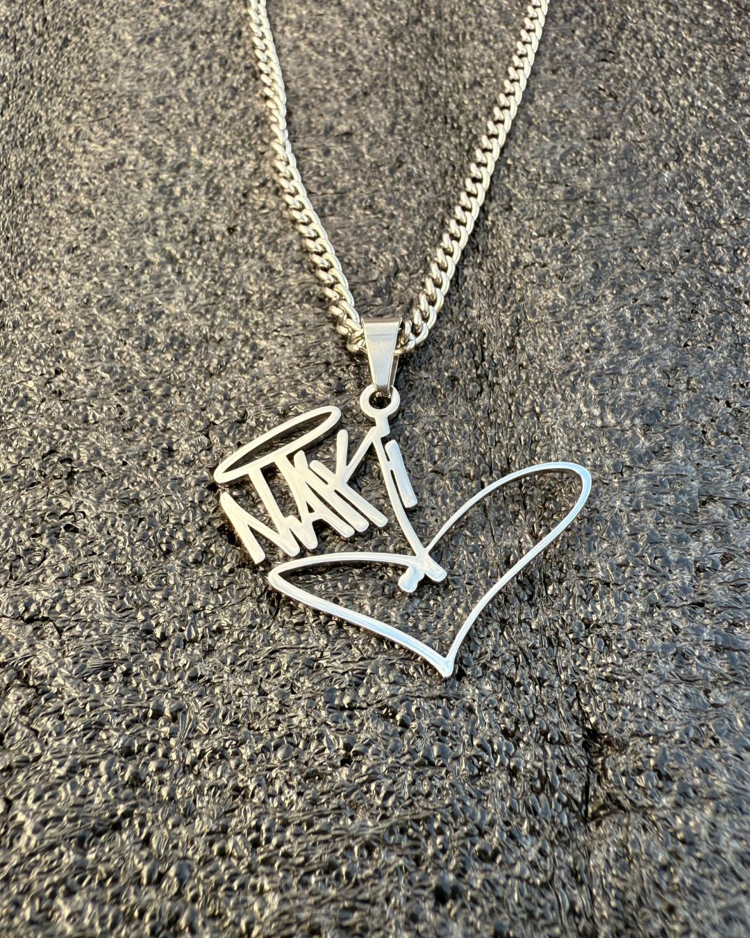 - Dije y cadena fabricados en acero quirúrgico de alta densidad. Ultra resistentes y brillantes.